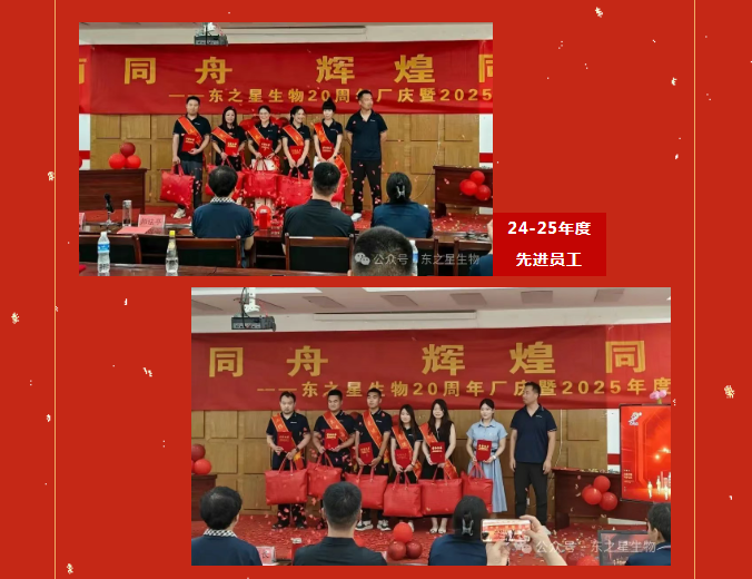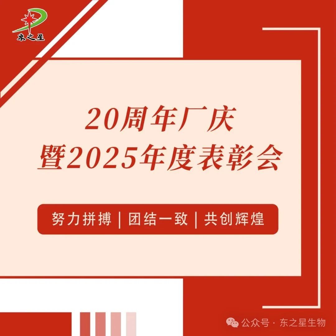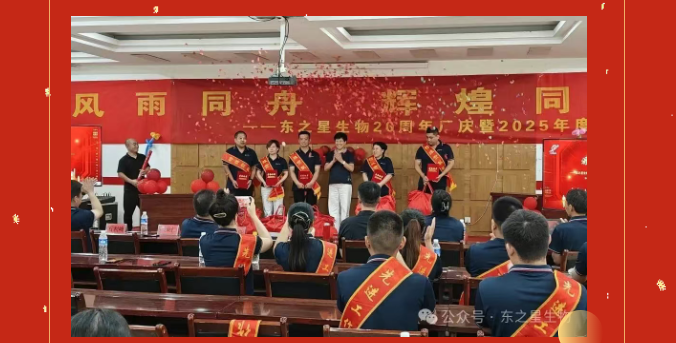 2025年8月8日,河北東之星生物科技股份有限公司20周年廠慶暨2025年度表彰會(huì)圓滿落幕。從回望二十年崢嶸路,到擘畫(huà)未來(lái)發(fā)展藍(lán)圖,從表彰先進(jìn)榜樣,到共簽?zāi)繕?biāo)承諾,每一個(gè)環(huán)節(jié)都凝聚著東之星人的初心與擔(dān)當(dāng),讓我們一同回顧一下這場(chǎng)盛會(huì)的精彩瞬間。